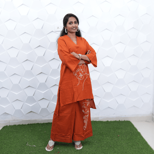 Earthy Terracotta Pleated Kurta Set with Royal Purple Zari Dupatta