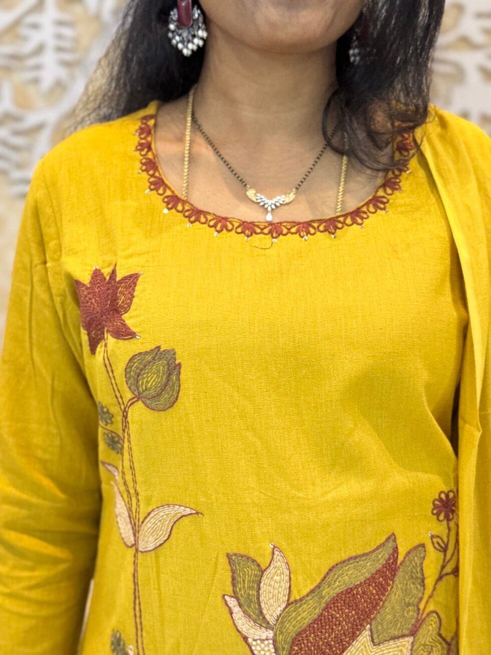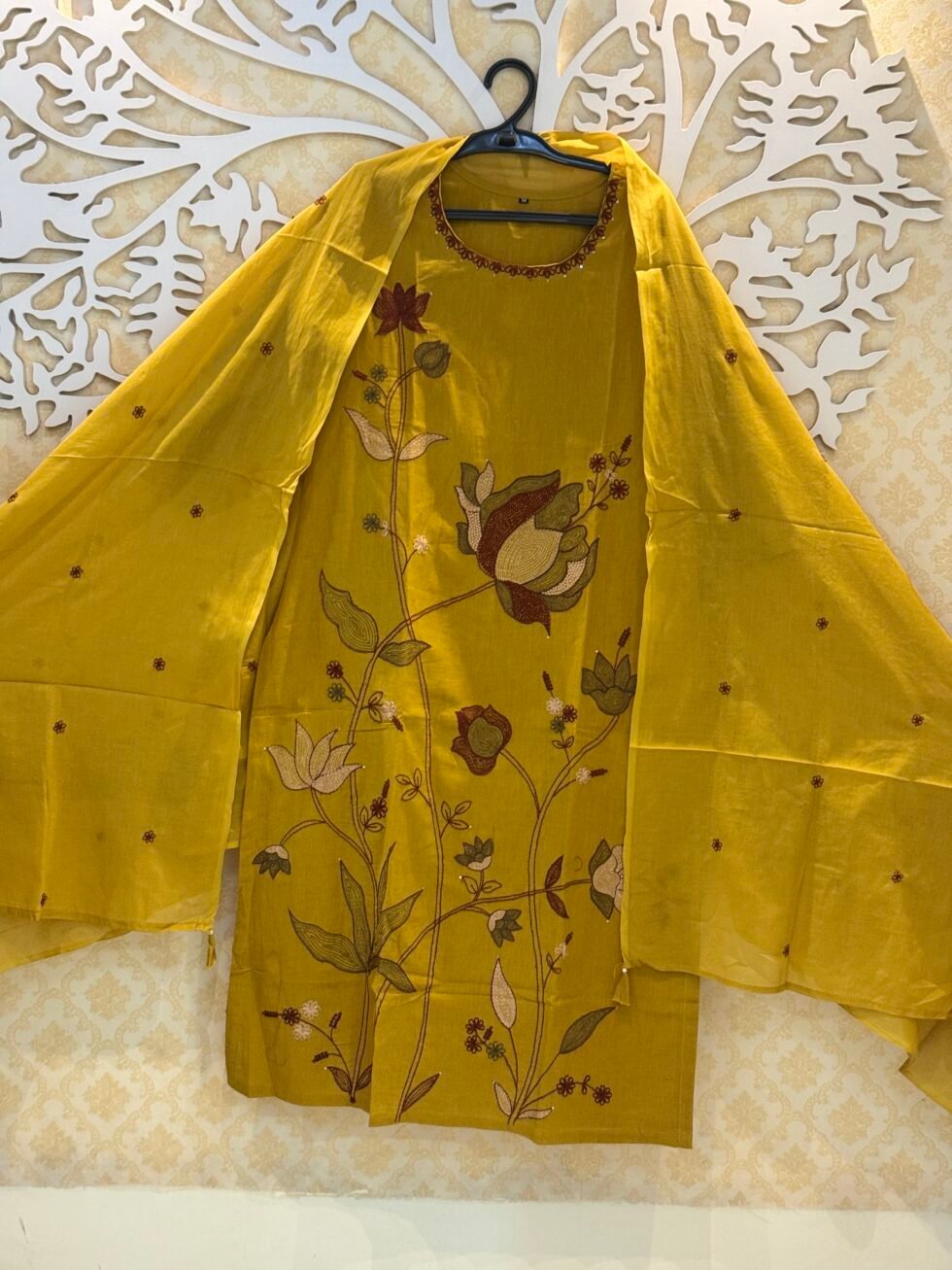 ๐ผ Mustard Yellow Floral Embroidered Kurta Set with Dupatta 3 Piece Kurtha Set